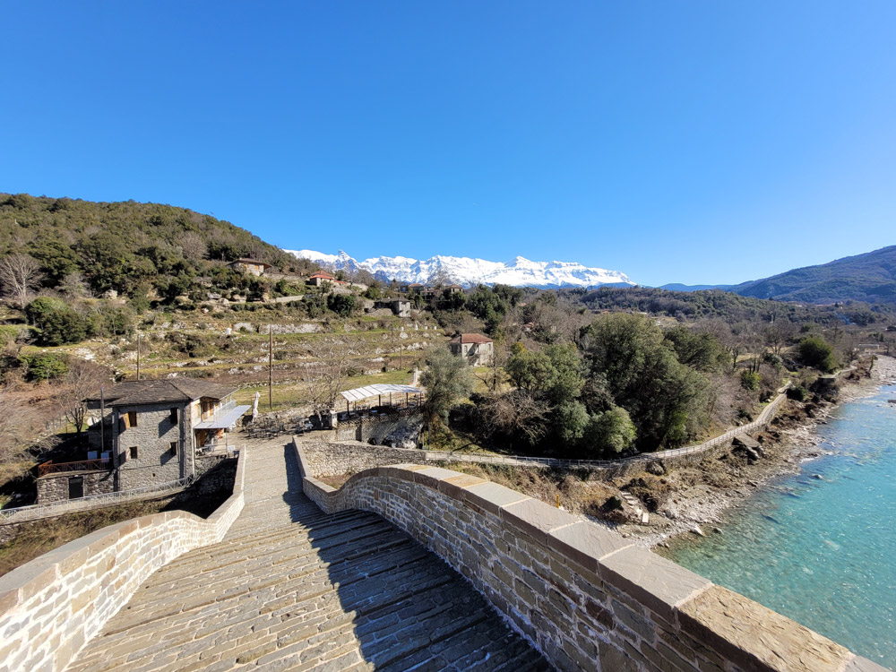 Μια φαινομενικά αδιάφορη στο ξεκίνημά της διαδρομή, η οποία όμως στη συνέχεια εξελίσσεται σε ιδιαίτερου φυσικού κάλους, σε φέρνει στο περίφημο μονότοξο γεφύρι που πριν μερικά χρόνια είχε καταρρεύσει και που ξαναχτίστηκε – με σεβασμό στην ιστορία – στη μορφή ακριβώς που είχε πριν, παραμένοντας ένα κόσμημα σε ένα μοναδικής ομορφιάς τοπίο. Και αξίζει τον κόπο να ανηφορίσεις πάνω στην πελώρια «καμάρα» του, επιδεικνύοντας τη δέουσα προσοχή, για να νιώσεις το σχετικό δέος και να εισπράξεις κάτι από την ατμόσφαιρα των εμπορικών καραβανιών των περασμένων αιώνων.